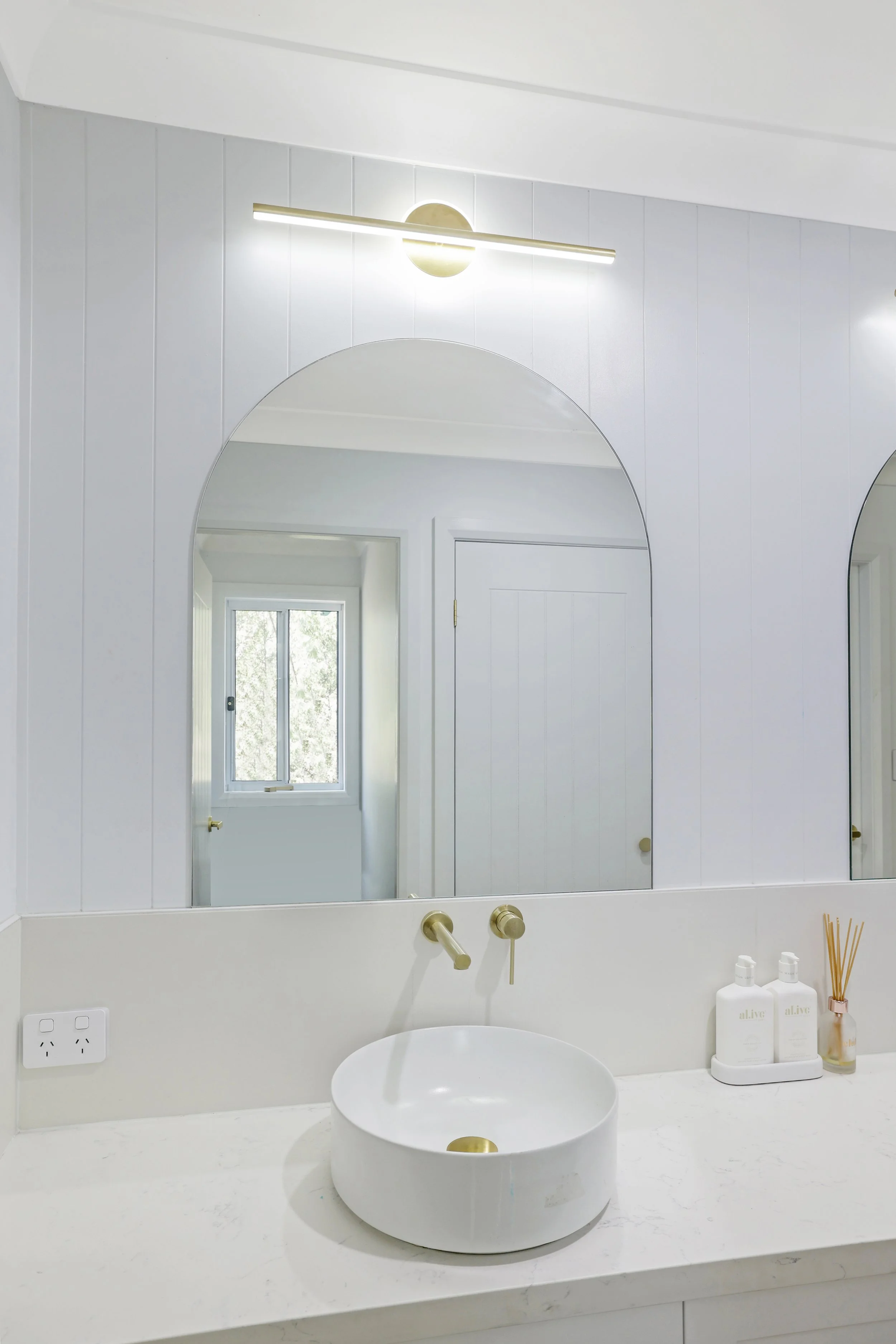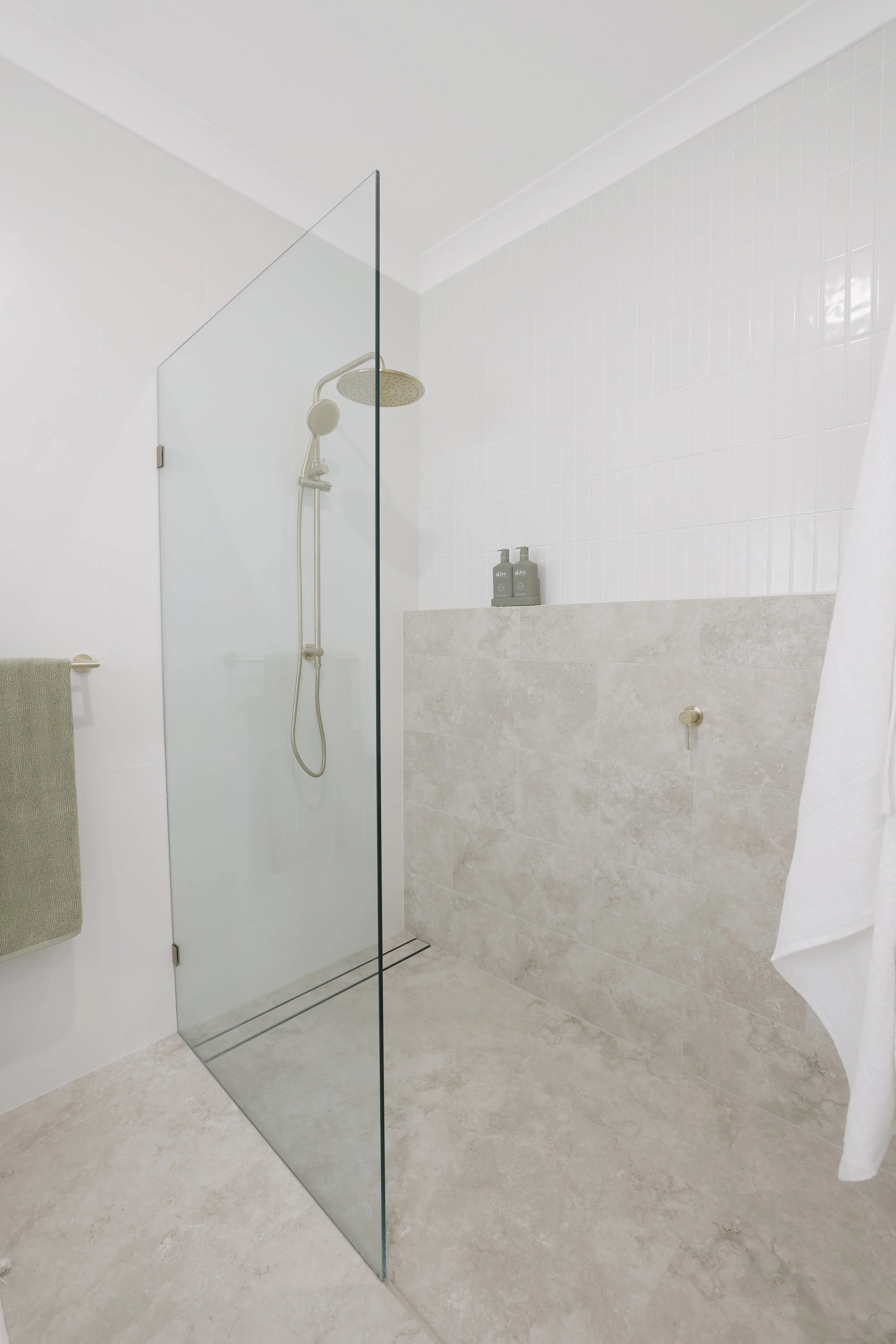 With a wall channel running down the tiles to keep your panel sturdy, this look elevates any bathroom. Keep it simple and stylish with your choice of coloured hardware.